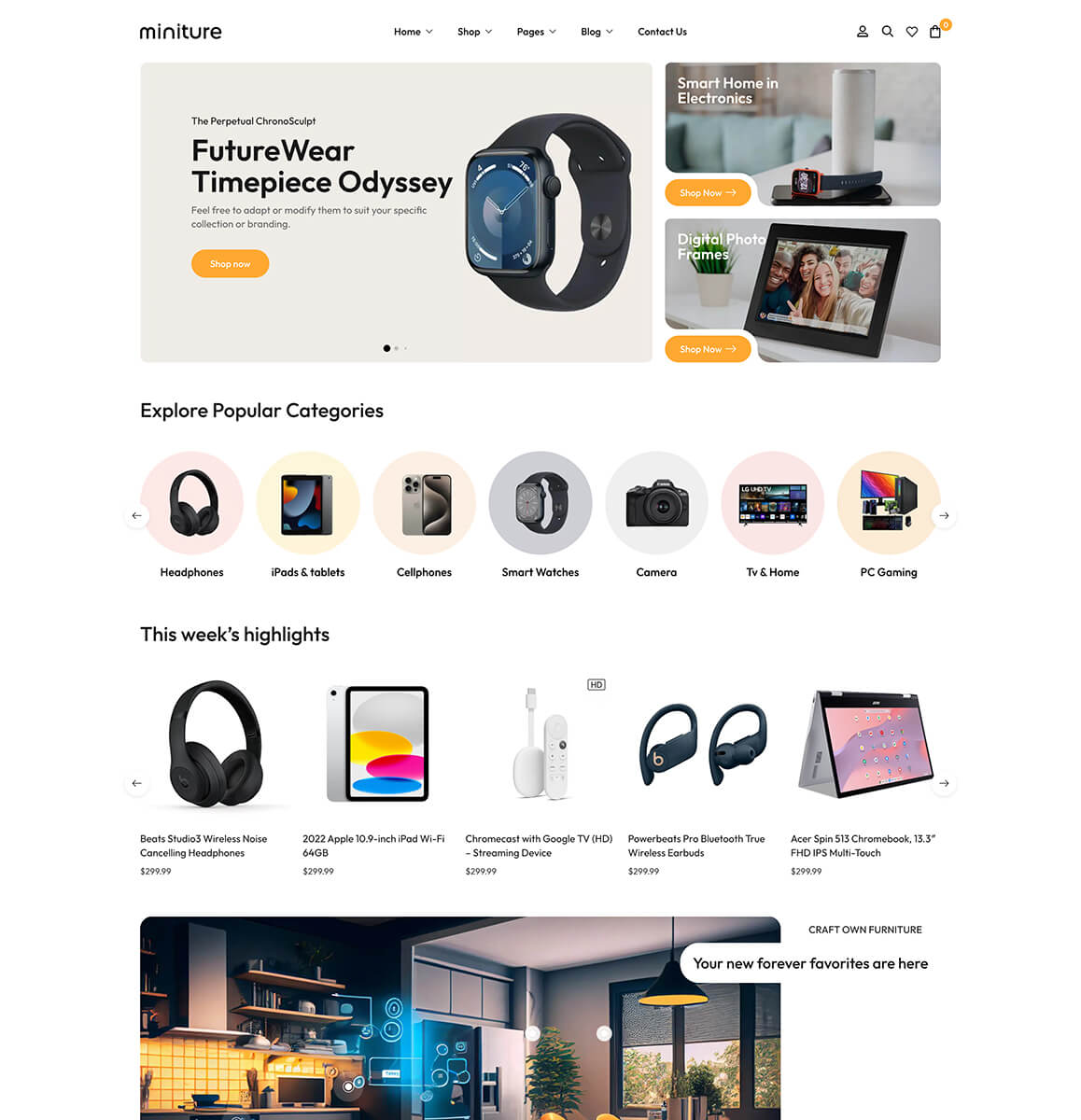 Easily import the whole Miniture demo content and choose from a selection of 14 amazing pre-designed home pages.